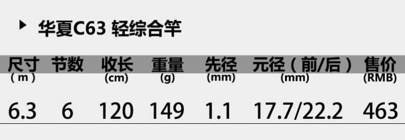 | 华夏C63 轻综合竿 |